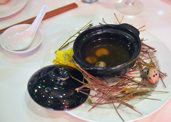 Chè khoai lang tím: Là loại thực phẩm đã được tính toán, nghiên cứu và cân nhắc kỹ càng và được chọn sau khi thấy rằng nó hợp với khẩu vị chung của các lãnh đạo cao nhất. Đây cũng là cơ hội để giới thiệu về một loại nông sản của riêng Việt Nam – khoai lang tím. Khi đưa món này lên duyệt thì được Lãnh đạo duyệt ngay lập tức.